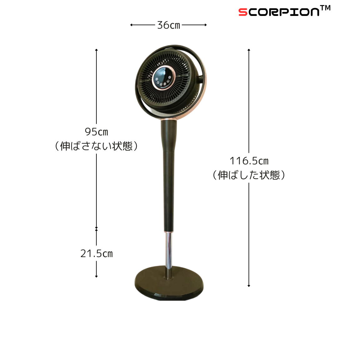静音性とパワーを兼ね備えた設計で、生活空間を邪魔しない快適な送風を実現。昇降機能により最大116.5cmまで高さ調整が可能。立ち位置や家具の高さに合わせて心地よい風を届けます。